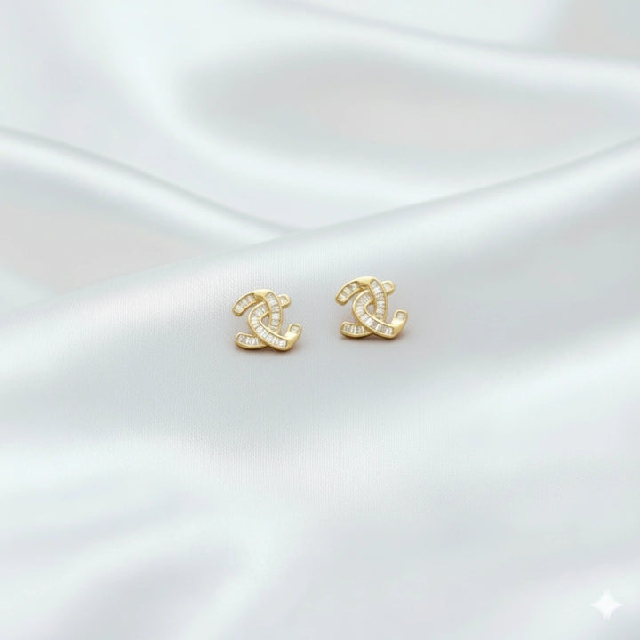 925 Sterling Golden Interlock Radiance Studs for Women