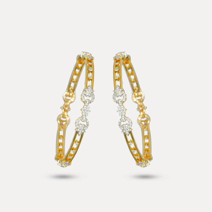- These 925 Sterling Silver Crafted with a rich golden finish, these elegant bangles are adorned with shimmering cubic zirconia stones, arranged in delicate floral-inspired clusters along the band.