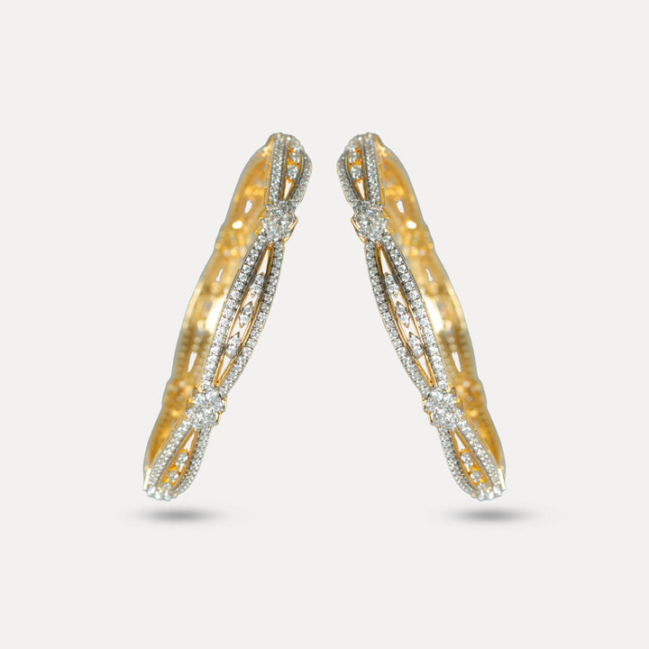 - These 925 Sterling Silver These bangles are crafted in a radiant golden finish with intricate criss-cross patterns, adorned with shimmering zirconia clusters for a refined, luxurious look.
