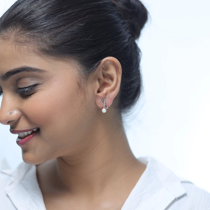 - These 925 Sterling Silver feature a delicate trail of sparkling crystals leading to a lustrous faux pearl, accented by a petite star.