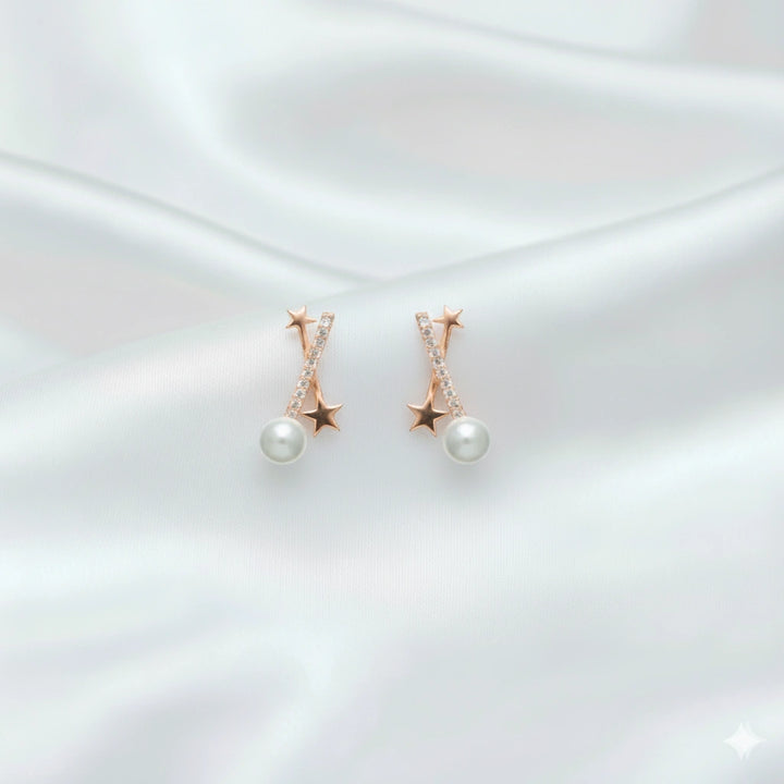 925 Sterling Rosegold Shooting Star Pearls Studs for Girls & Women