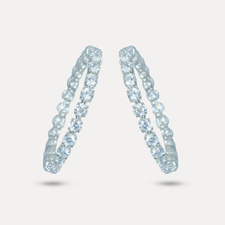 - These 925 Sterling Silver These sleek silver-toned bangles are lined with a continuous row of brilliant round-cut zirconia stones, radiating timeless elegance and sparkle.