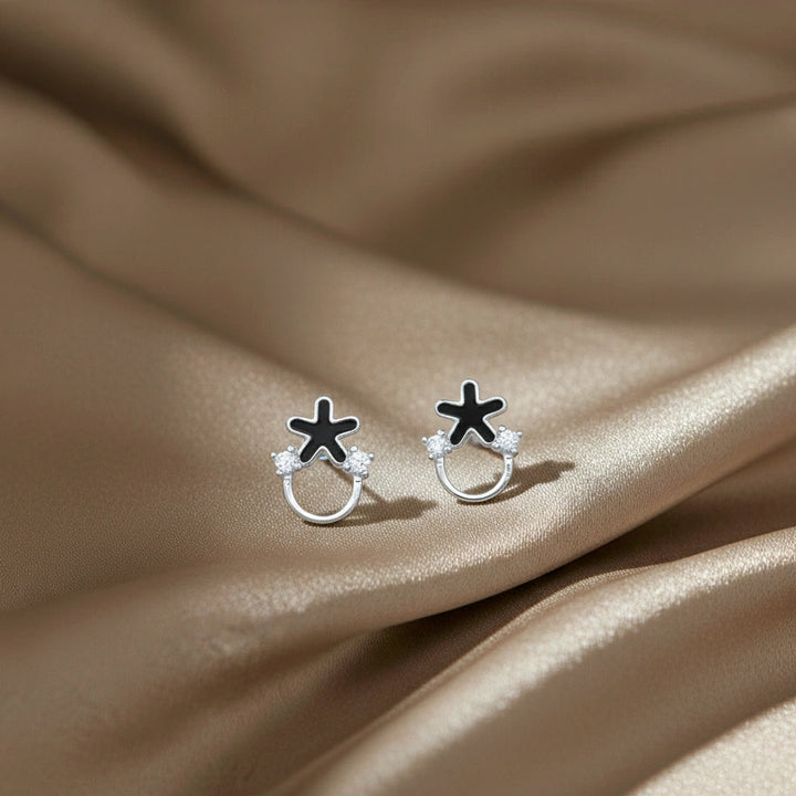 - These hoops feature a dark star and a curved ring with delicate crystal details, creating a captivating and modern look. dark star-like element and an open arc with sparkling crystals, creating an eclipse-inspired and contemporary look.