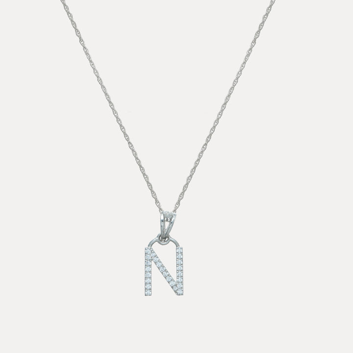 - These 925 Sterling Silver featuring the initial "N" encrusted with sparkling zircon stones. Suspended from a delicate silver chain, this timeless piece is perfect for personal wear or as a thoughtful gift.