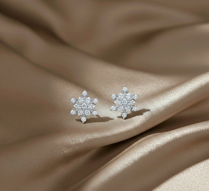 - This stud earrings are Inspired by the first blooms of winter, these stud earrings feature a sparkling snowflake design. Their small size makes them perfect for everyday wear.