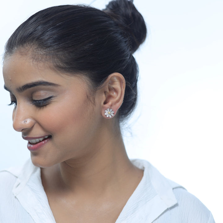 - These 925 Sterling Silver Brighten your day with these delightful daisy stud earrings, featuring crystal-paved petals surrounding a warm, golden centre.