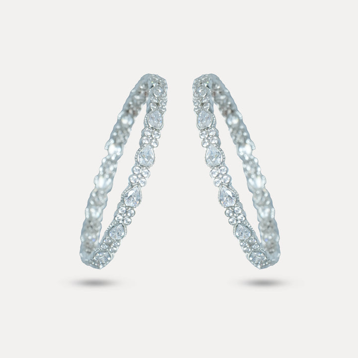 - These 925 Sterling Silver These exquisite bangles feature alternating teardrop and round-cut zirconia stones, creating a graceful rhythm of sparkle on a sterling silver base.