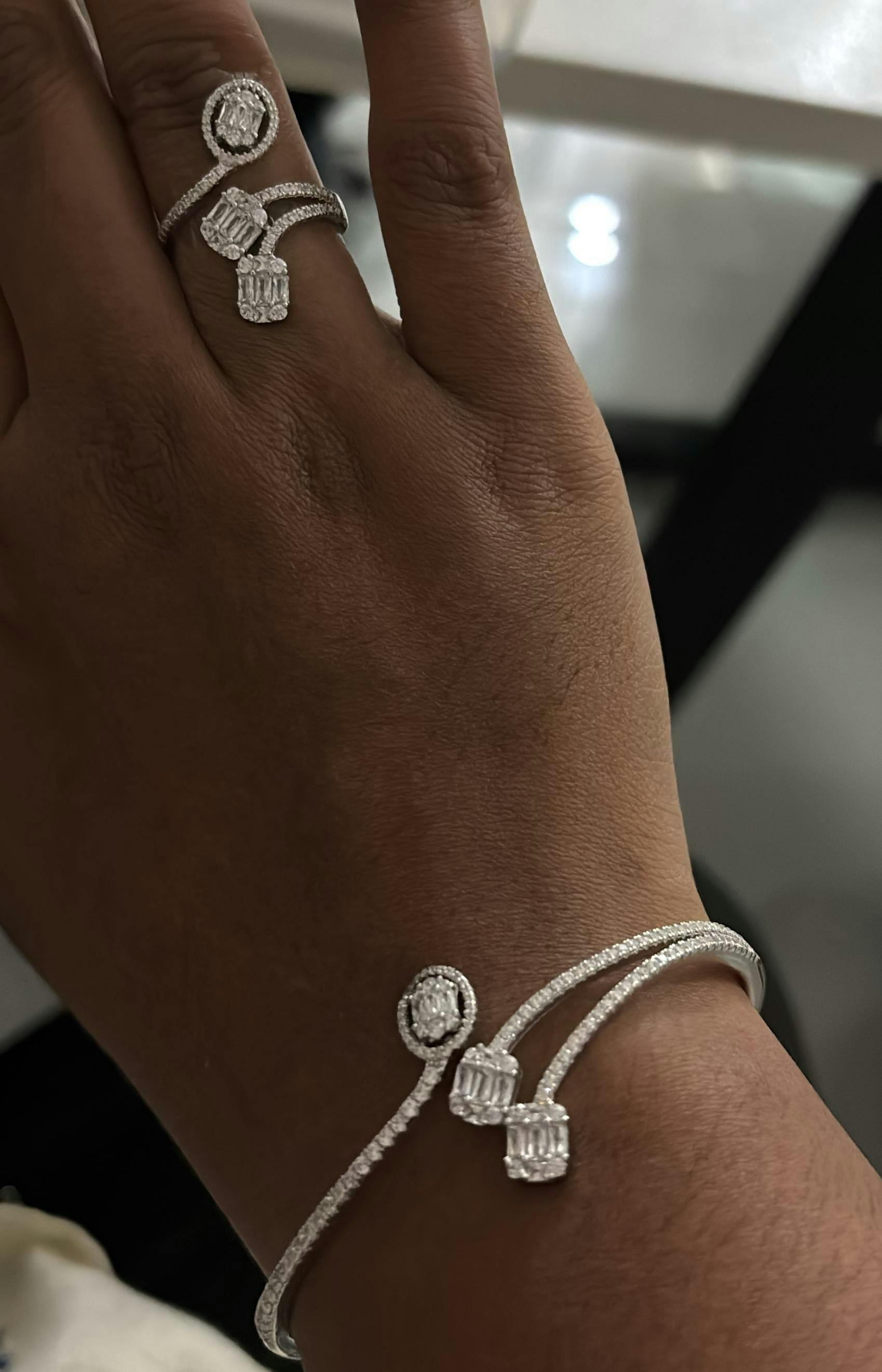 - This 925 Sterling sliver kada has baguette diamonds with unique design.