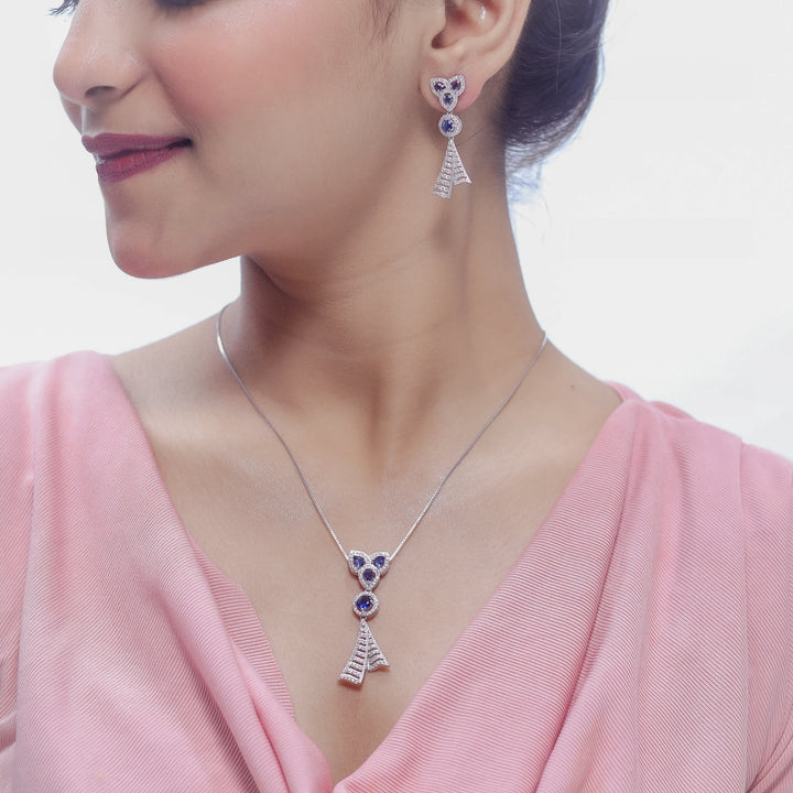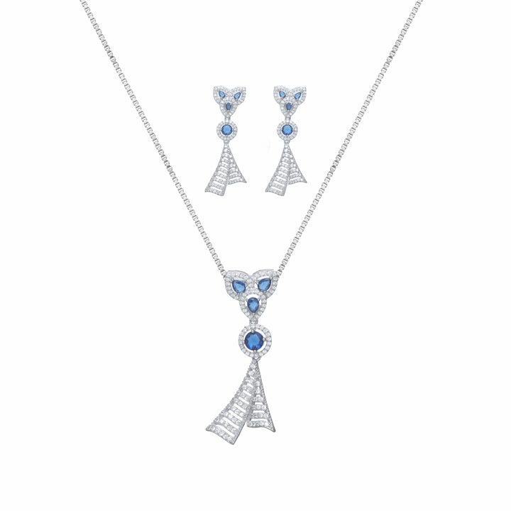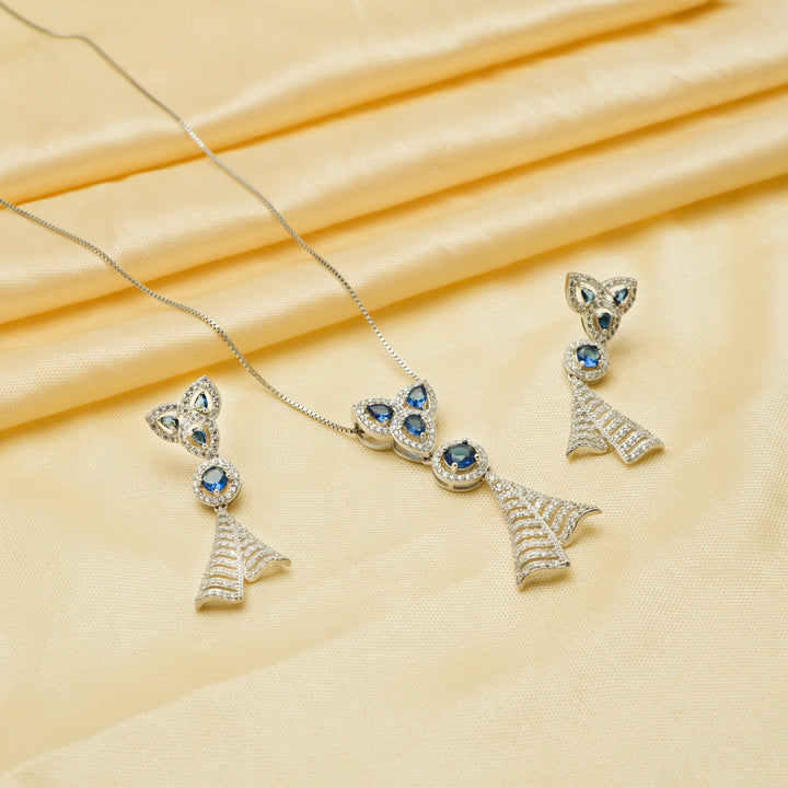 - These 925 Sterling Silver A graceful jewellery set with a stylish blue stone pendant and matching long tops in silver. The modern design with sparkling accents makes it perfect for parties, weddings, and festive wear.