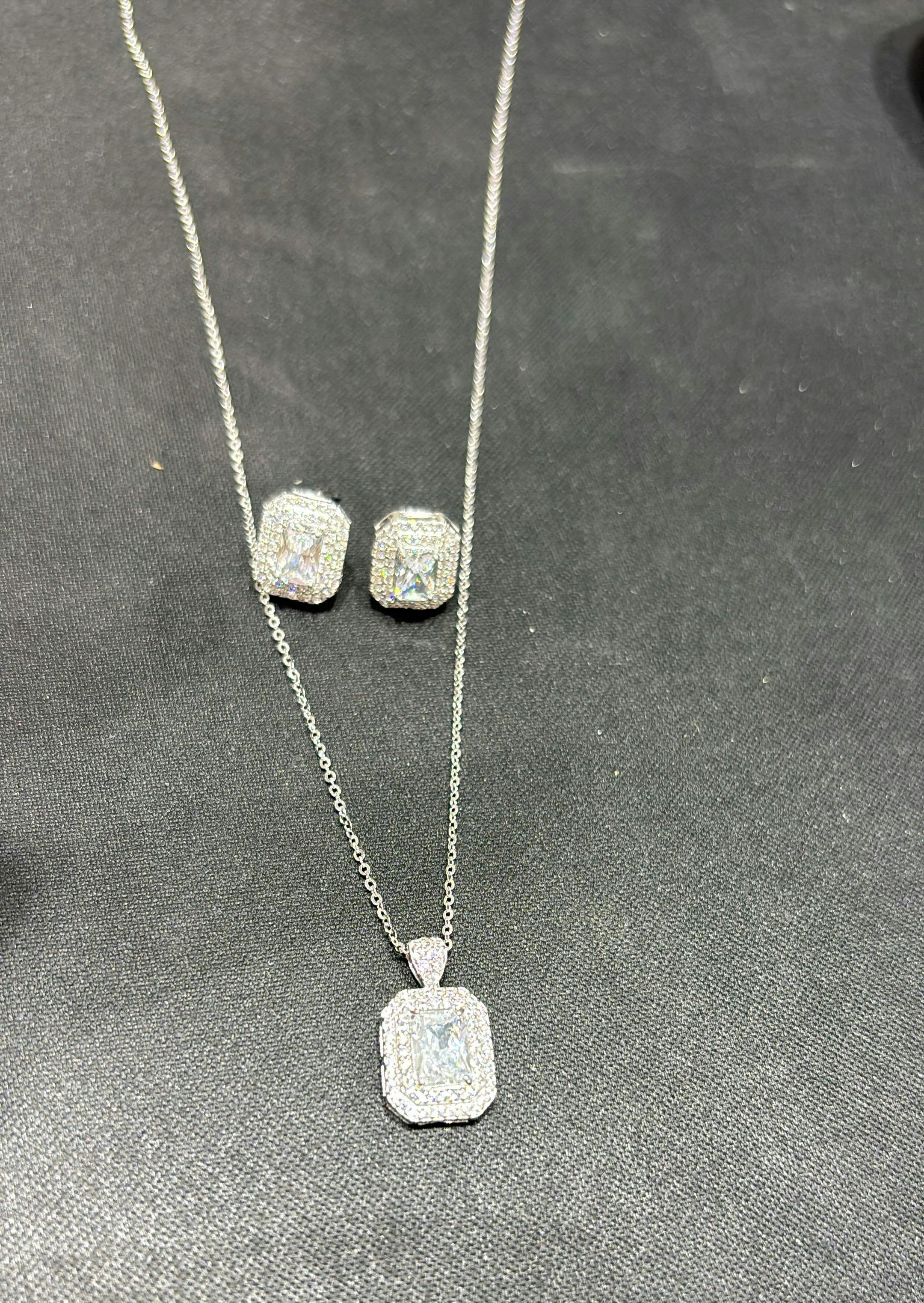 - These 925 Sterling Silver rectangular-cut zircon sparkles like a crown jewel, set in polished sterling silver and surrounded by a radiant double halo.
