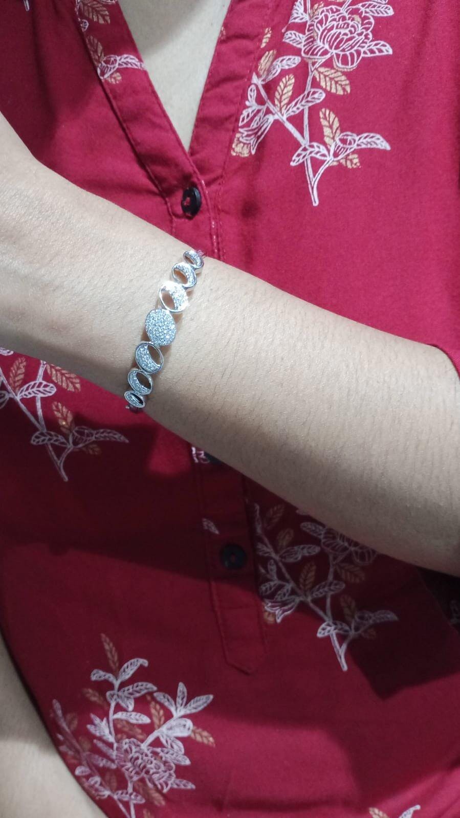 - These 925 Sterling silver dazzling Kada featuring diamonds arranged in orbiting circles, creating a mesmerizing and elegant statement.