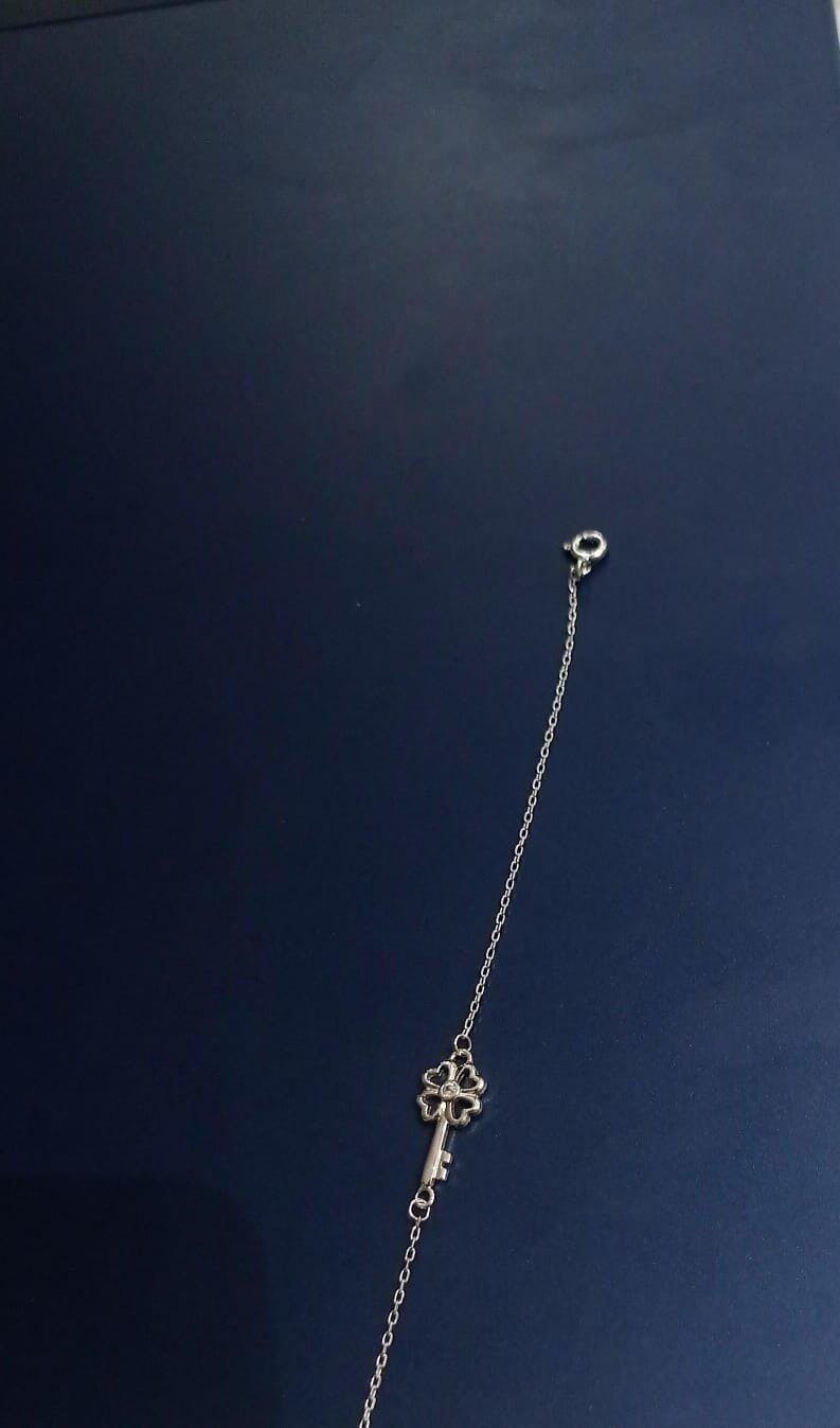 - Ā This 925 Sterling Silver delicate bracelet features a silver chain adorned with a charming key charm, symbolizing the unlocking of dreams and aspirations.