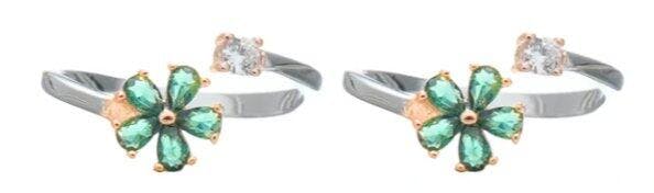 - These 925 Sterling Silver Featuring a petite five-petal floral design with vivid green stones and a sparkling white crystal accent, these toe rings are finished in polished silver with subtle rose gold touches.