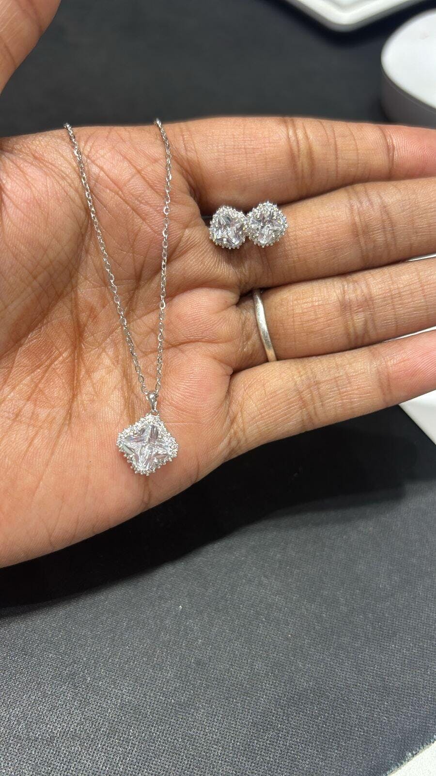 - These 925 Sterling Silver features a unique four-point star-shaped zircon framed in a soft square silhouette.