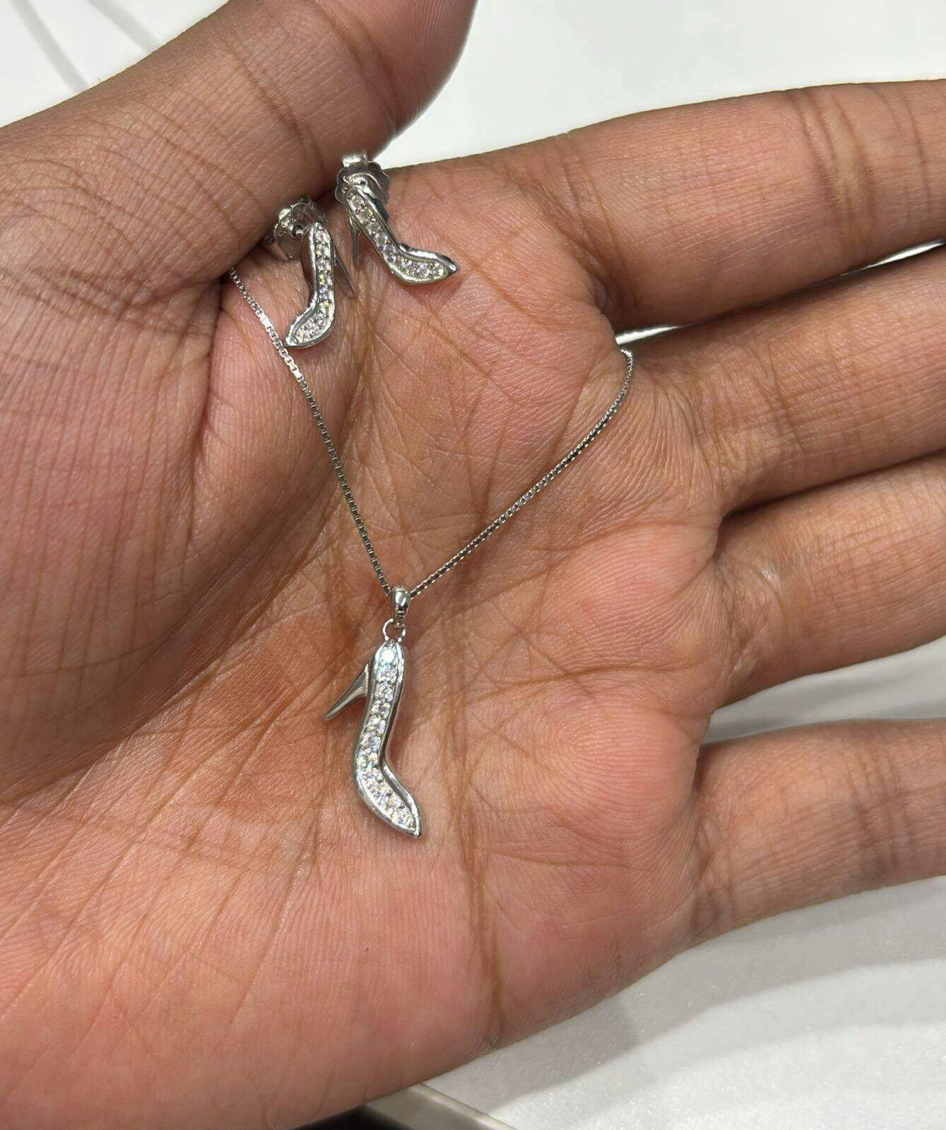 - These 925 sterling silver necklace and earrings duo features elegant stiletto-shaped pendants encrusted with shimmering zircon stones