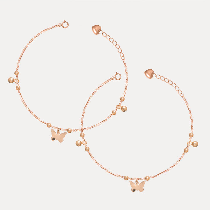 925 Sterling Golden Butterfly Charm Anklet for Women
