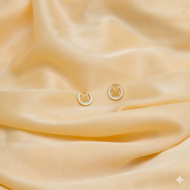 - These 925 Sterling Silver feature a bold letter "M" encased in a circle with a delicate row of sparkling crystals at the top. A personalized touch of elegance.