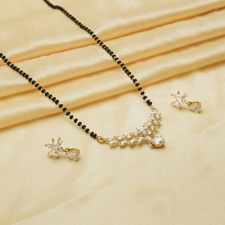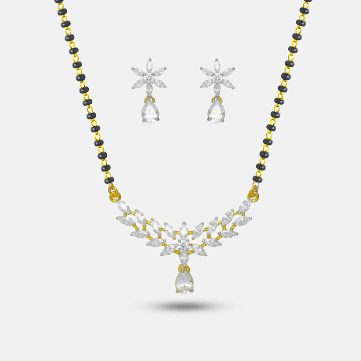 - These 925 Sterling Silver Inspired by twinkling stars, this mangalsutra features a radiant stone-studded design with matching earrings.