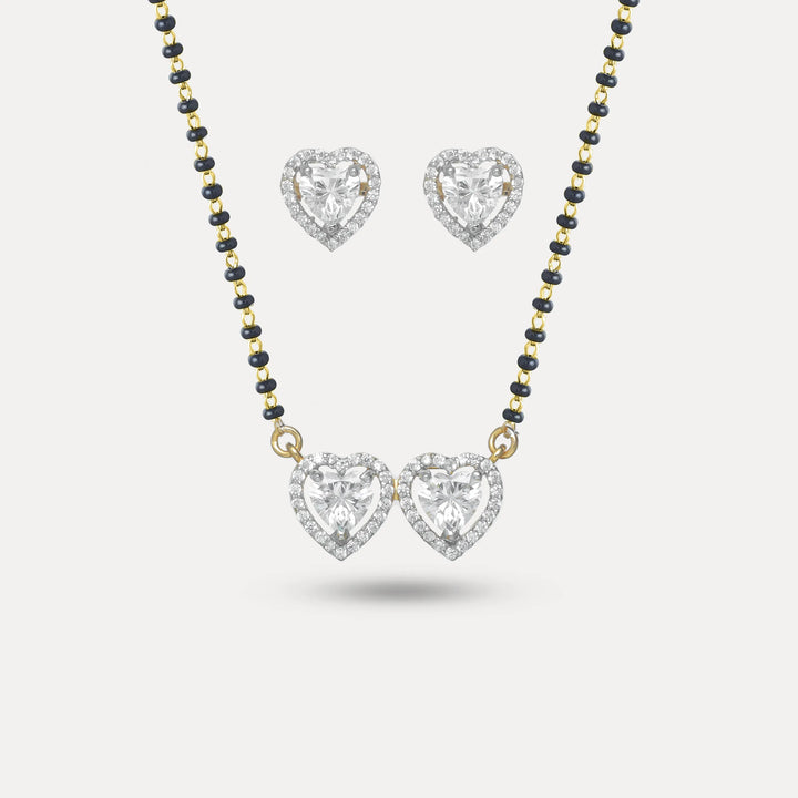 - These 925 Sterling Silver Adorned with twin crystal hearts, this elegant mangalsutra with earrings is designed to reflect timeless love and beauty.
