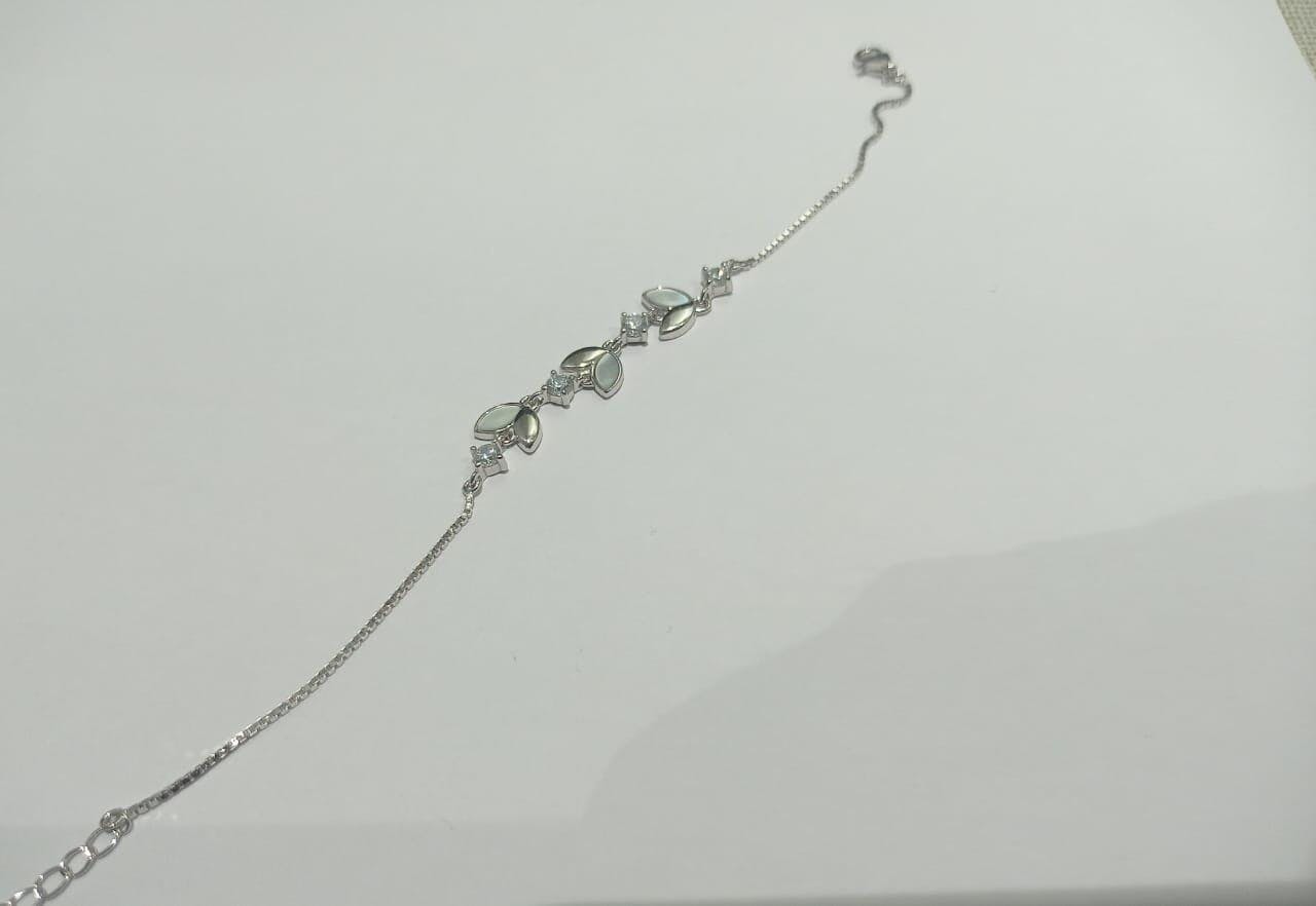 - These 925 Sterling Silver This bracelet features delicate silver leaves accented with small sparkling stones. Its natural-inspired design makes it a graceful and charming addition to any jewelry collection.