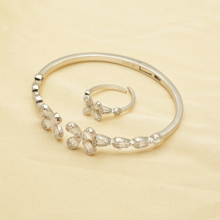 - These 925 Sterling Silver With its flower-inspired design and radiant zircon sparkle, this kada and ring set blends tradition with a modern touch of grace.