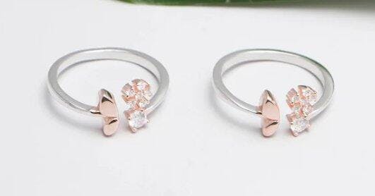 - These 925 Sterling Silver with a soft rose gold finish and delicate white stones. Inspired by blooming petals, these rings offer a clean and graceful look, perfect for both daily wear and special moments.