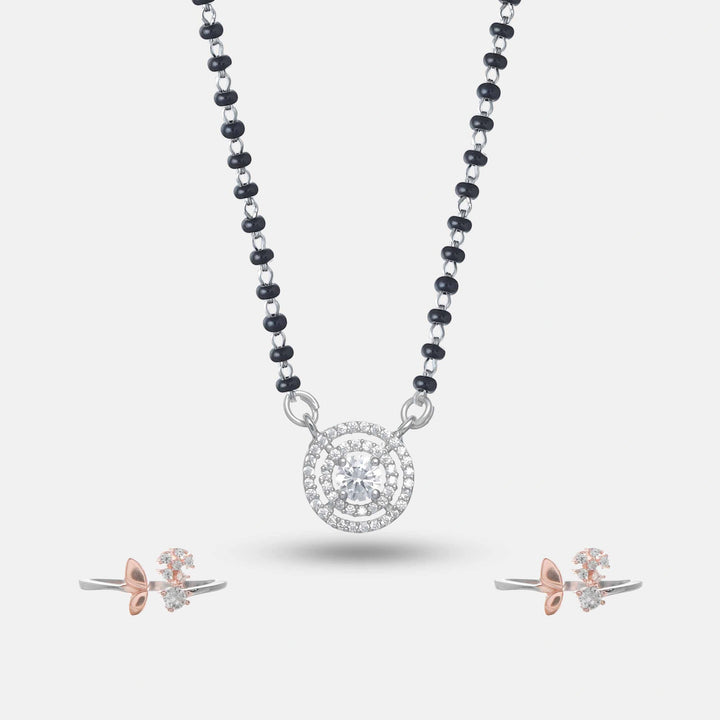 925 Silver Mangalsutra With Petal Toe Ring Set