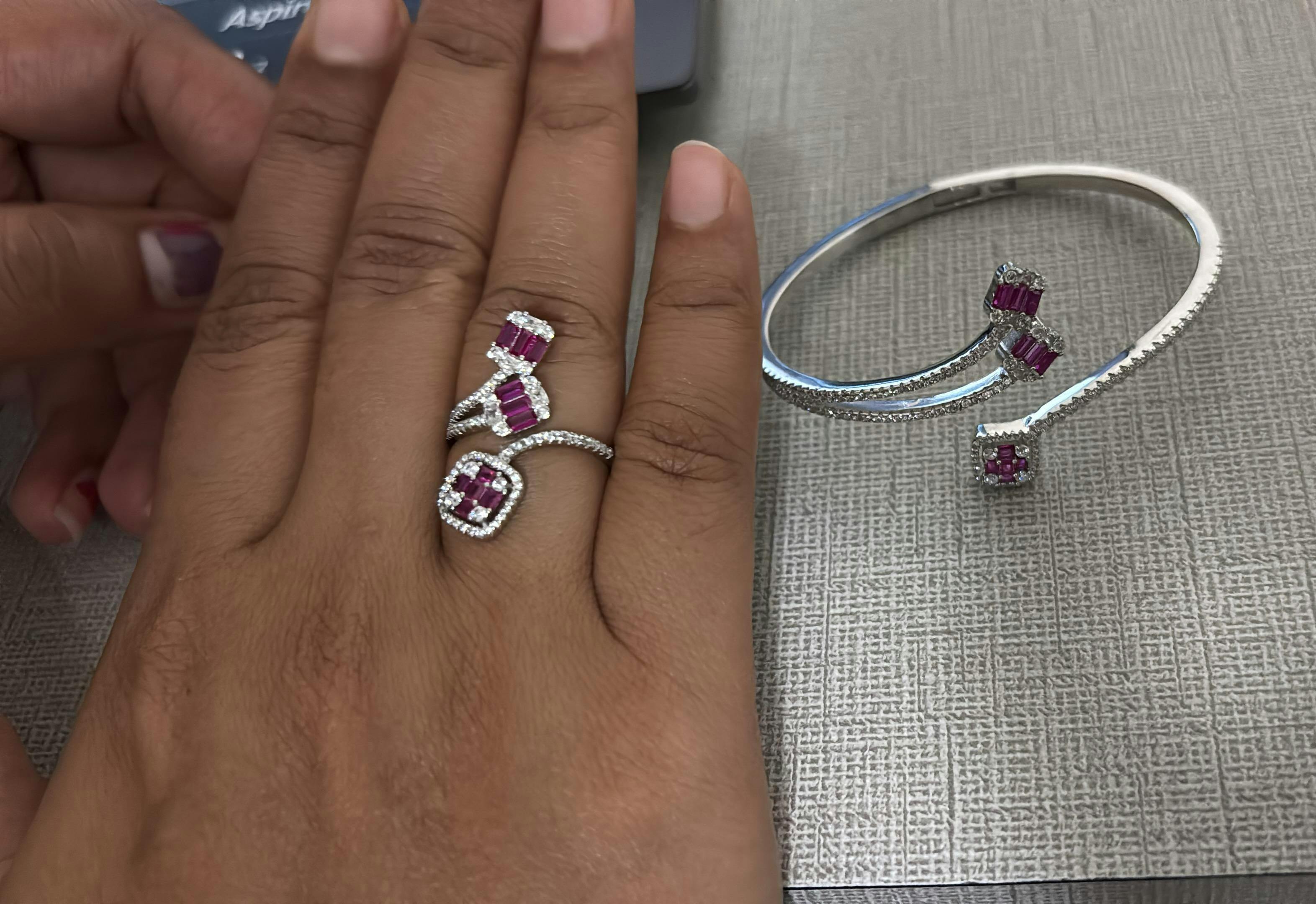 Silver Pink Diamond Twirling Grace Bracelet with Ring Set
