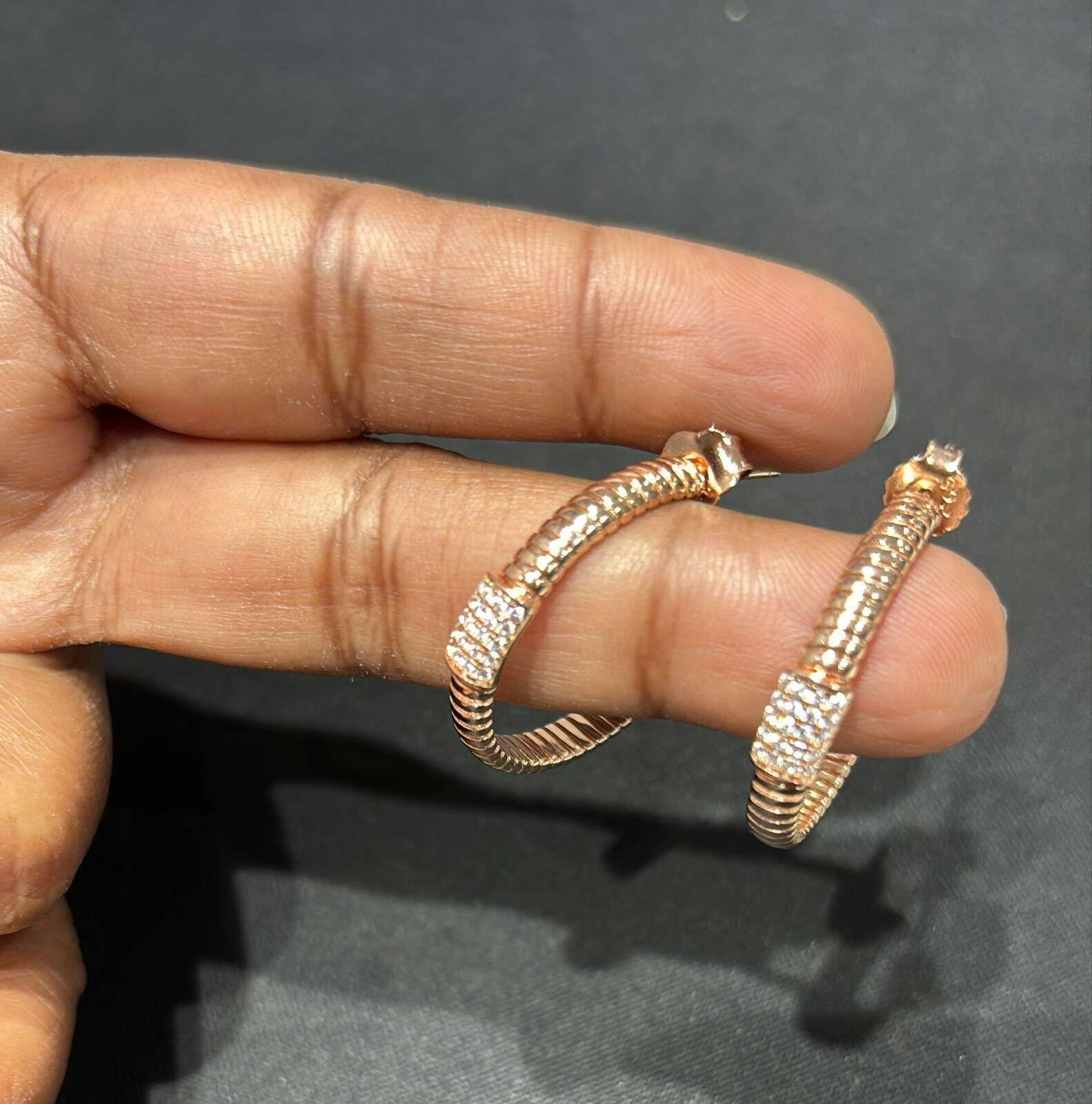 - These 925 Sterling Silver Rosé Coil Luxe Hoops exude modern sophistication with their spiralled silhouette and dazzling zircon-studded accents.