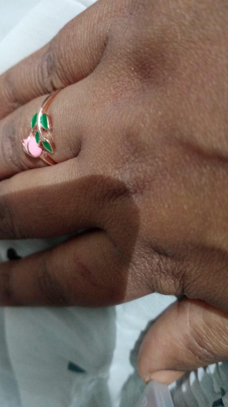 - These 925 Sterling Silver features a charming pink bud with lush green leaves, elegantly crafted on a rose gold band