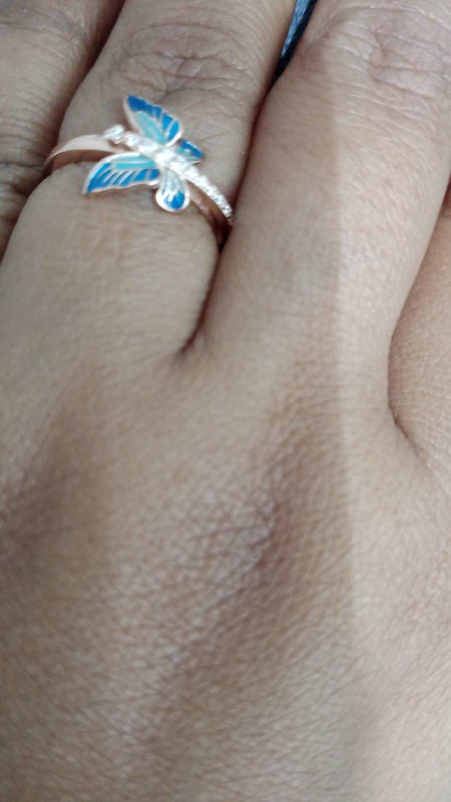 Rose Gold Blue Butterfly Ring