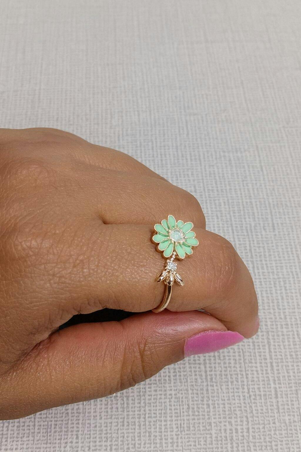 925 Sterling Rose Gold Green Daisy Bee Ring For Women & Girls