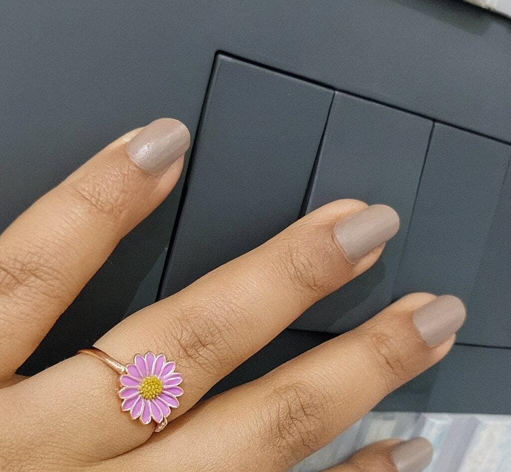 925 Sterling Rose Gold Purple Daisy Ring For Women & Girls