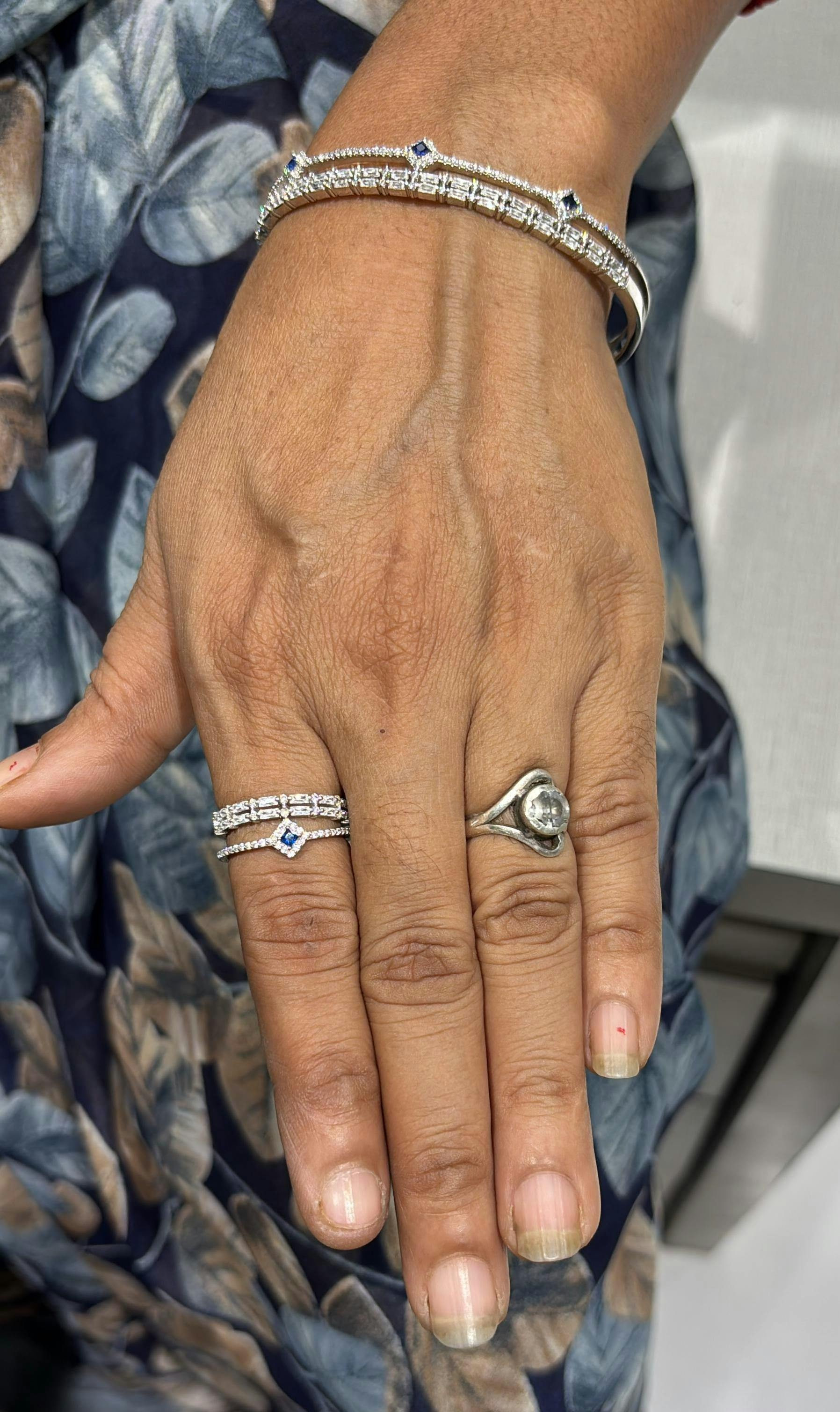 - This 925 Sterling Silver kada features three Ā sapphire diamonds with elegant design .