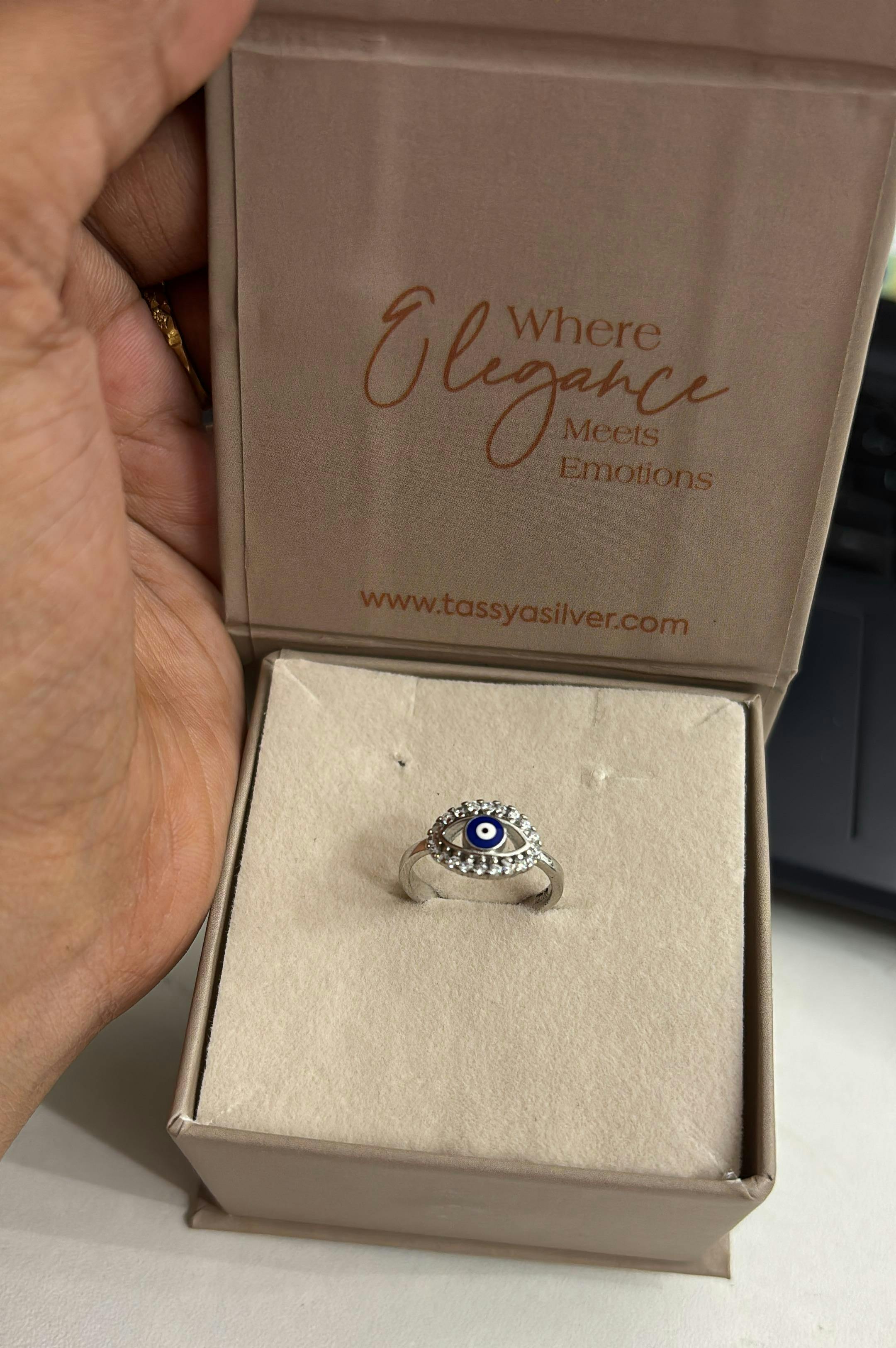 - These 925 Sterling Silver Ā features a delicate floral motif paired with a bold navy evil eye charmāperfect for everyday elegance and good vibes