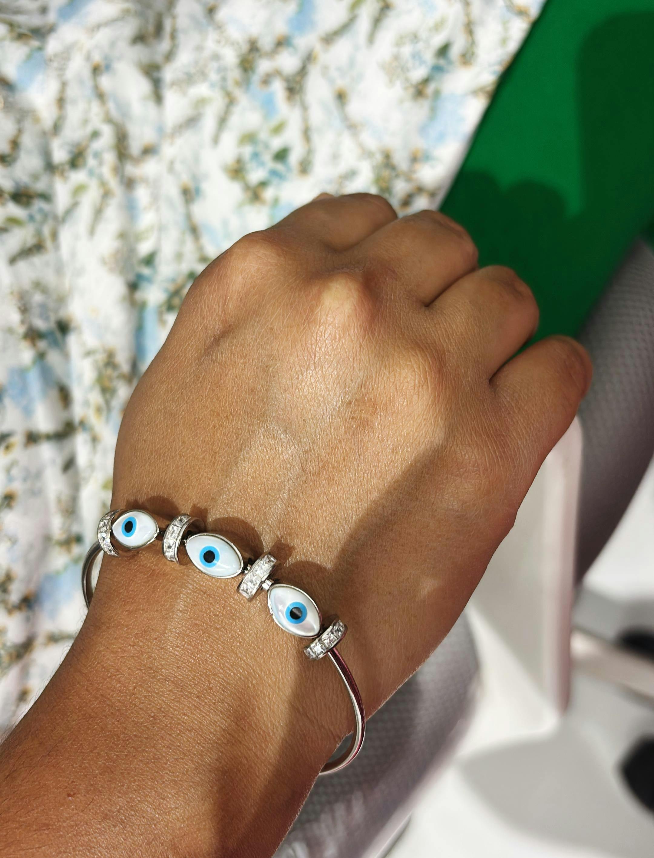- These 925 Sterling Silver features a radiant evil eye charm with delicate lash-like accents and a modern chain linkāperfect for stylish protection and daily glam.