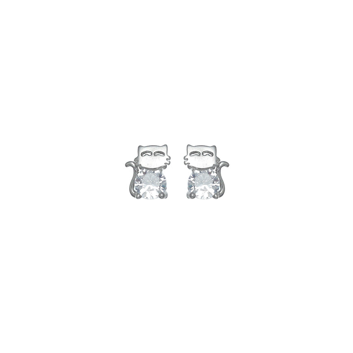 - These 925 Sterling Silver Adorable cat-shaped stud earrings featuring a sparkling gemstone at the centre.