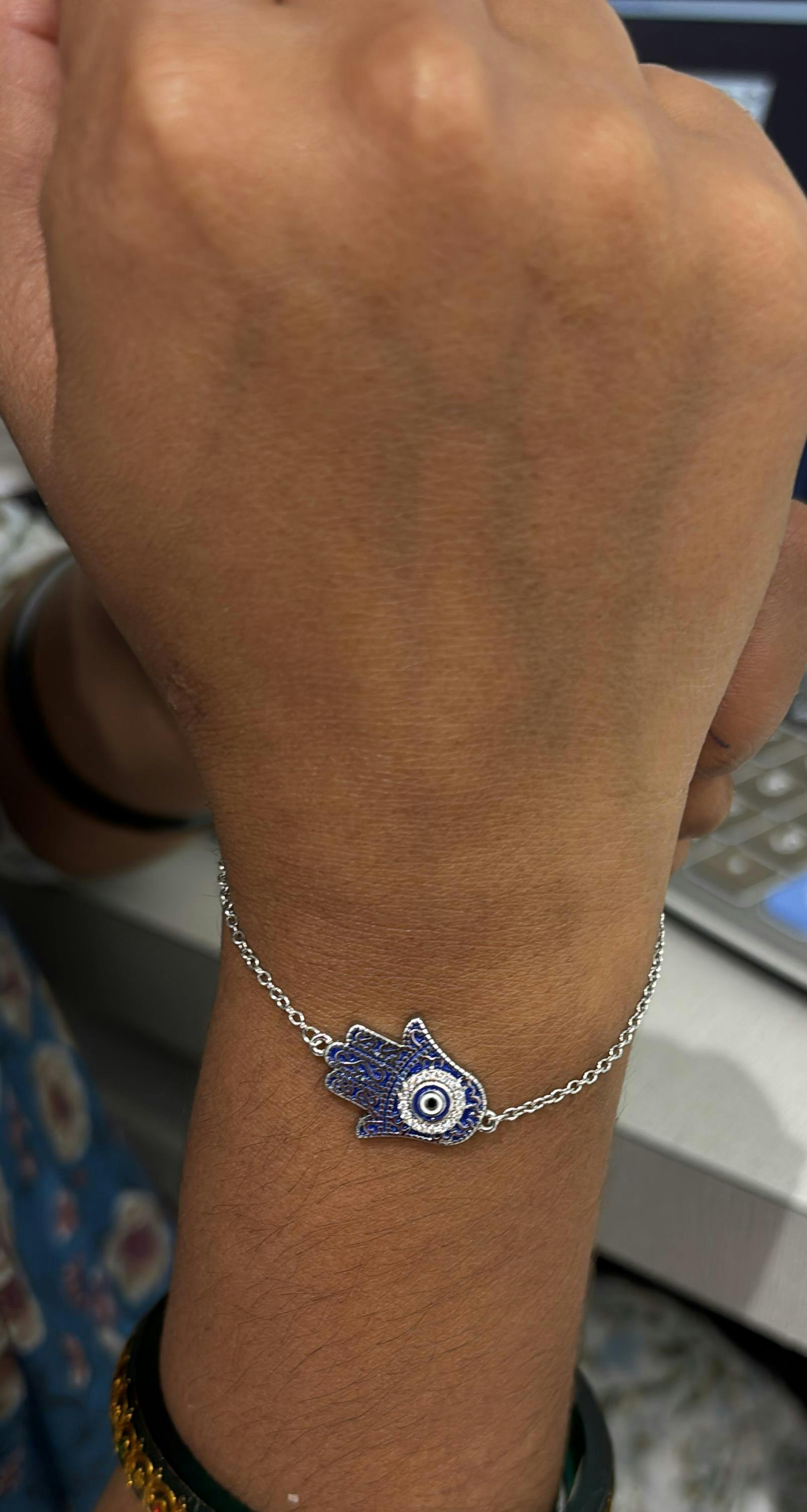 - These 925 Sterling Silver Ā features a bold blue enamel Hamsa hand with an evil eye at its heartāblending ancient symbolism with modern style to bring you protection and peace.