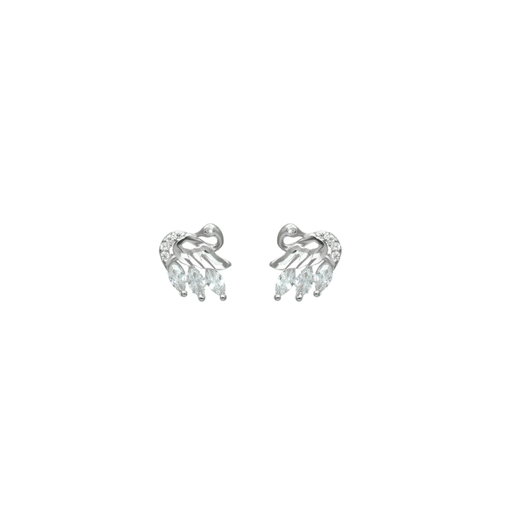 - These 925 Sterling Silver these stud earrings evoke the delicate beauty of swan feathers, crafted with shimmering crystals in a flowing design.