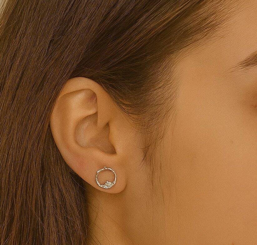 - These 925 Sterling Silver Ā feature a unique circular design with a shimmering stone at the centre. Ā